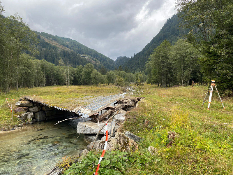 Le fortissime precipitazioni della scorsa estate hanno danneggiato e reso inagibile il ponte in zona Campal, sul tracciato della pista blu (foto).